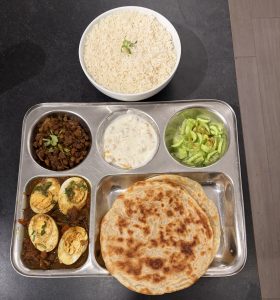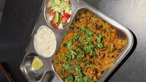 I absolutely love all kinds of food but my love for Indian cuisine runs deeper because of my roots. When I moved to Oxford in October, I came with bags of masala (ground spices), a jar of ghee, and my trusty steel plate. The plate wasn’t particularly attractive or special in most people’s eyes, but it was the first plate I bought when I started living alone. It is practical, durable, and easy to wash. It also holds the kind of meals I grew up eating: rice, roti, dal, sabzi, alongside maybe some raita, salad, or pickle on the side.